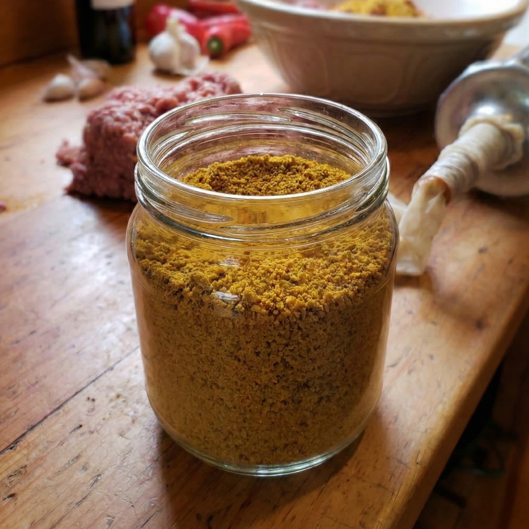 Combine 750g of Spice Mix with 15kg of lean lamb, beef, or goat and 1.5 liters of chilled water.